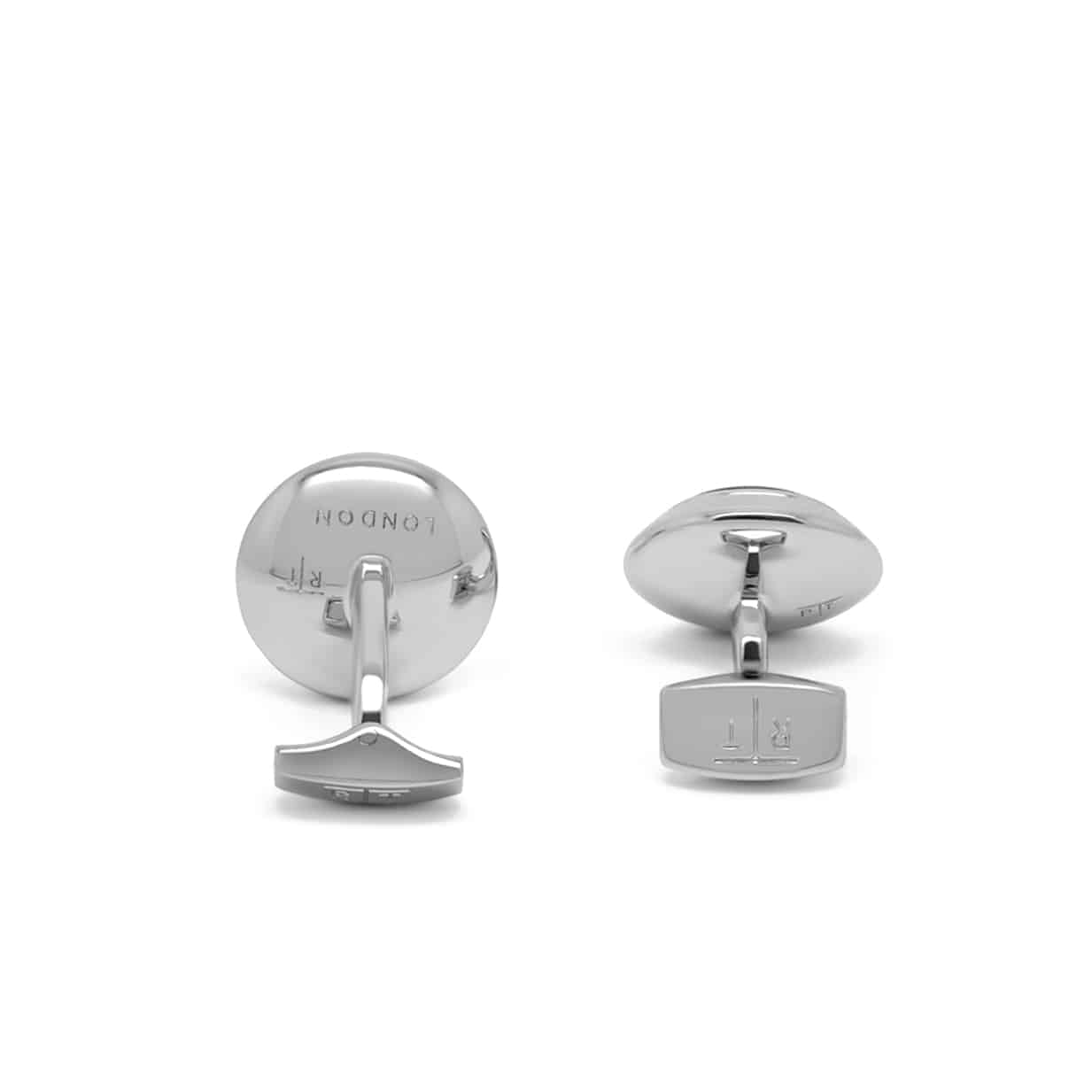 The concept of moving mechanicals and a sense of playfulness are signature elements of the Tateossian cufflink collections. This particular model is a fully functional compass with a smooth domed glass top.