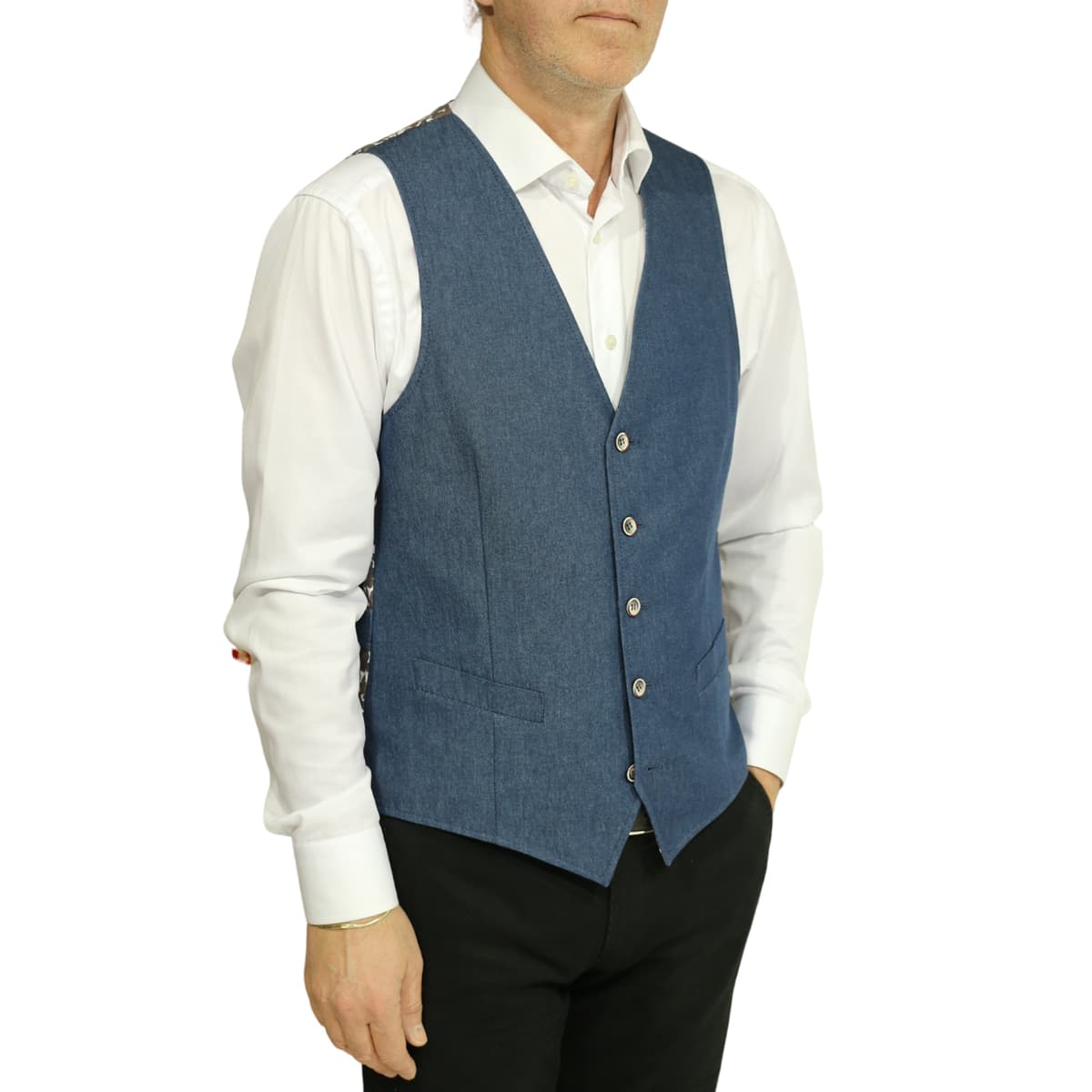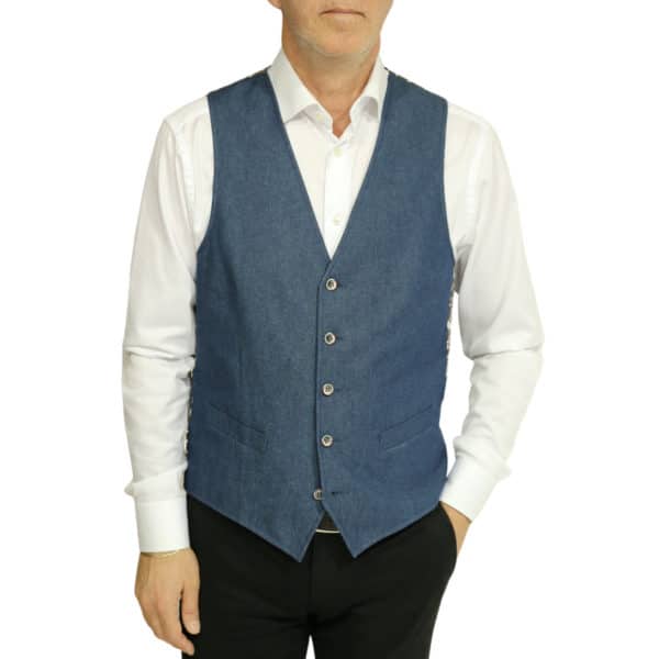This Digel Blue Denim Waistcoat is a stylish addition to smart and casual outfits. Cut to a regular fit, this waistcoat is comfortable to wear and has an adjustable back buttoned strap. For a stylish look, this waistcoat has a denim cloth front with 5 brown buttons and a printed interior and back.