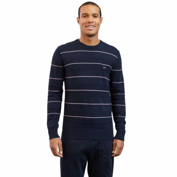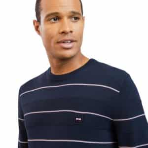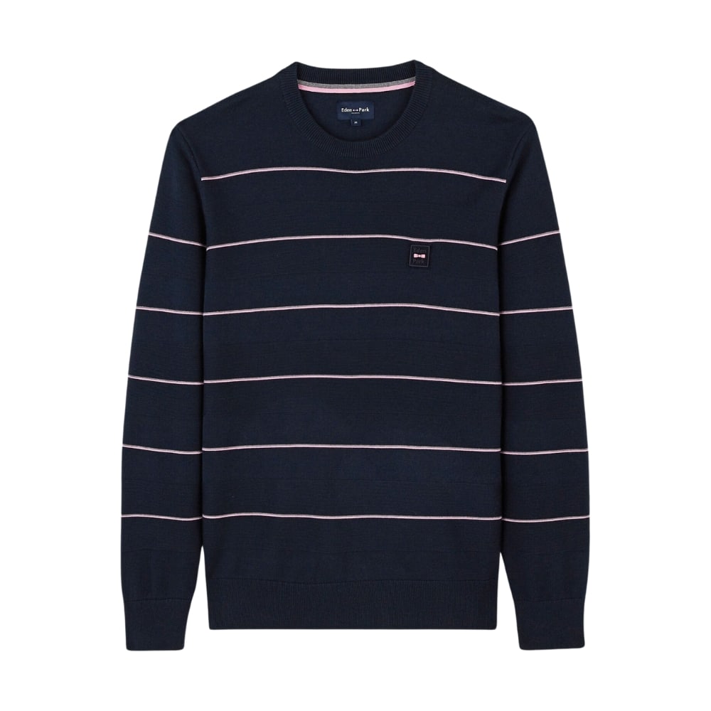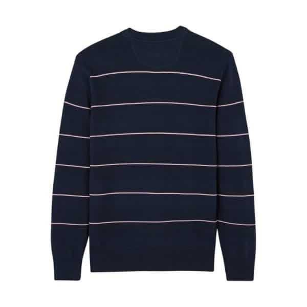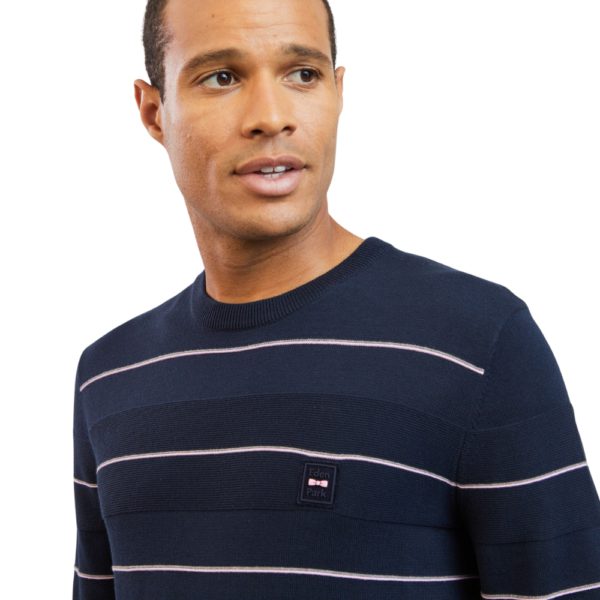 Fashioned in pure cotton, this jumper features beautiful thin two-tone stripes on a knit stitch with a tonal horizontal stripe pattern