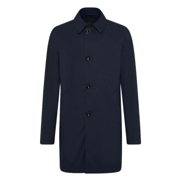 The Eduard Dressler Navy Raincoat is a smart, versatile piece for cold and wet weather. The outer shell has a classic shape with collar and button closure; made with GORTEX technology, this shell offers water resistance. Inside it is equipped with a warm liner which offers superb insulation.