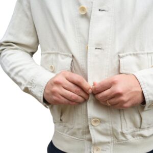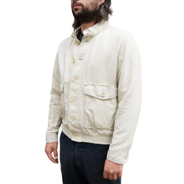 This Eduard Dressler Cream Casual Jacket is a light and breathable Summer or transitional piece with a relaxed button up style. The fabric utilises a superb quality Linen and Cotton which has a soft, refined handle. Cream buttons, button collar and patch pockets with button flap fastening and an inner pocket check complete this warm weather essential.