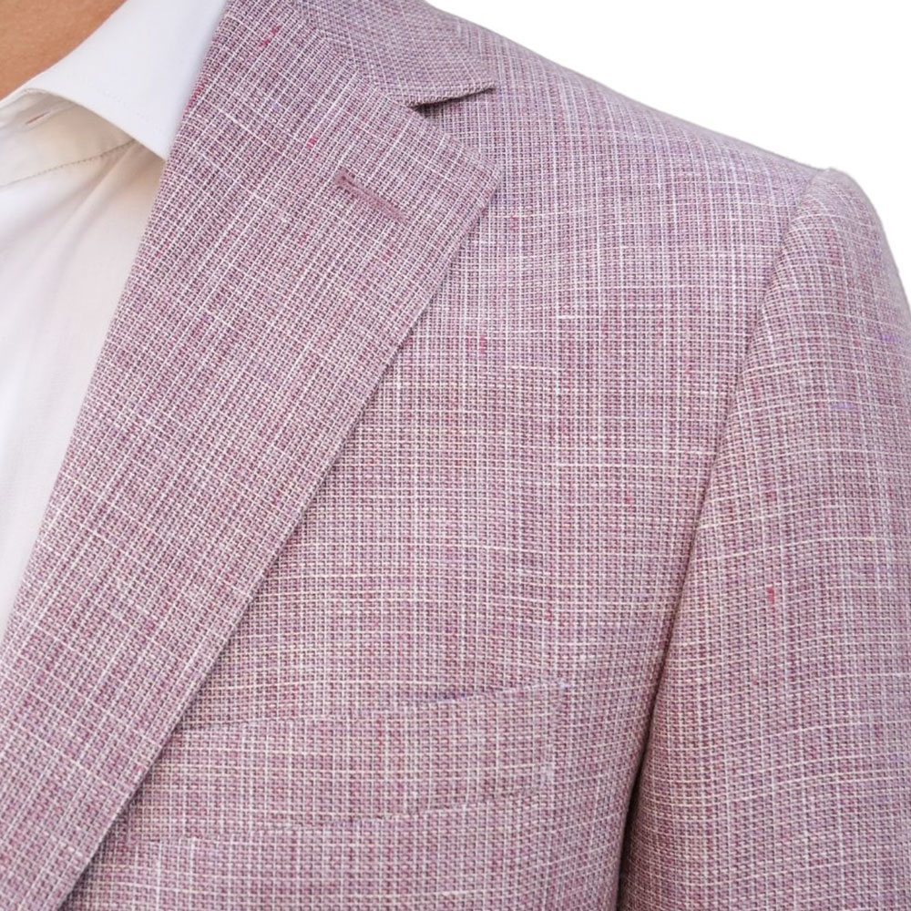 This Eduard Dressler Pink Wool and Linen Summer Jacket is refined piece for the smart wardrobe. The single breasted shape has a two button front and is complete with notch lapels, chest pocket and two front patch pockets. Cut to a regular fit, this jacket sits close to the body whilst offering generous room for comfort. The fabric used is made from a premium wool and linen blend that features a textured weave for a distinctive look.