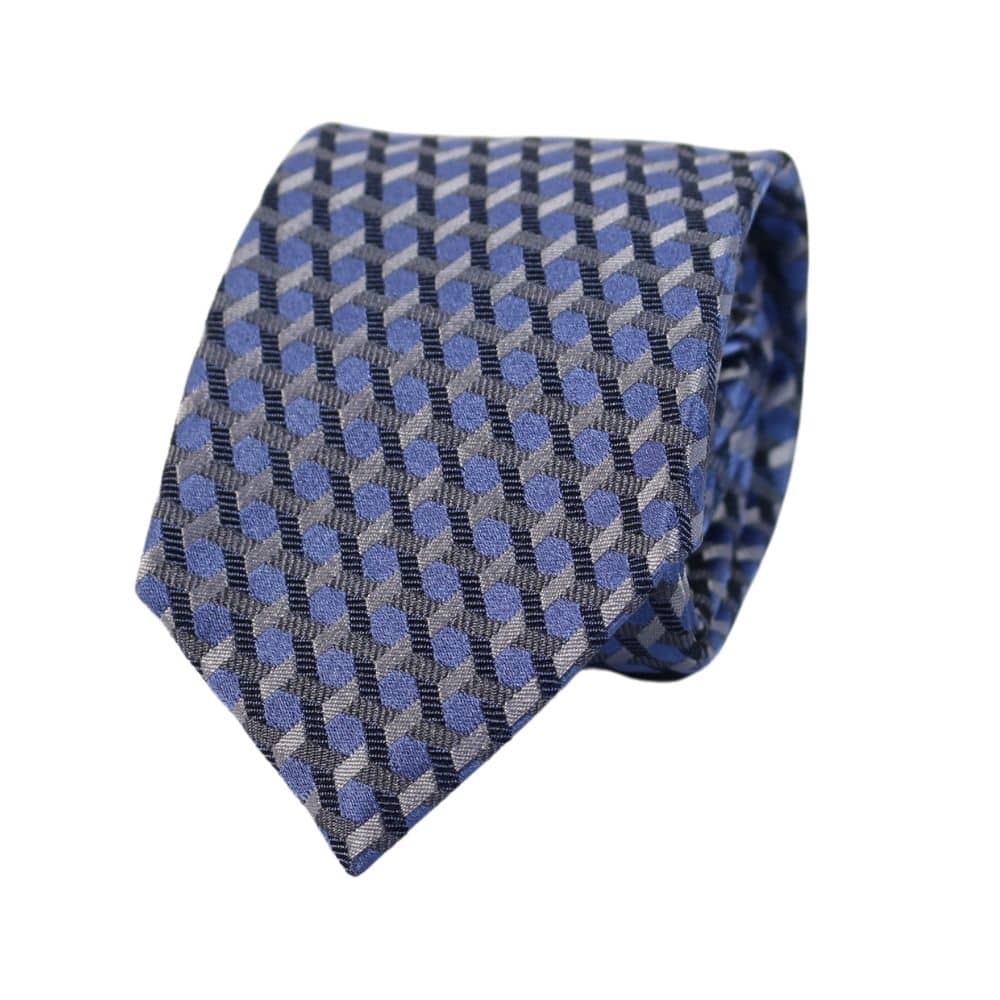 The Emporio Armani Barbed Stripe Tie in Navy is made in Italy from quality silk and features a silver and blue barbed stripe. The piece is complete with a keeper loop on the back. Look smart by pairing it with your well-tailored shirts.