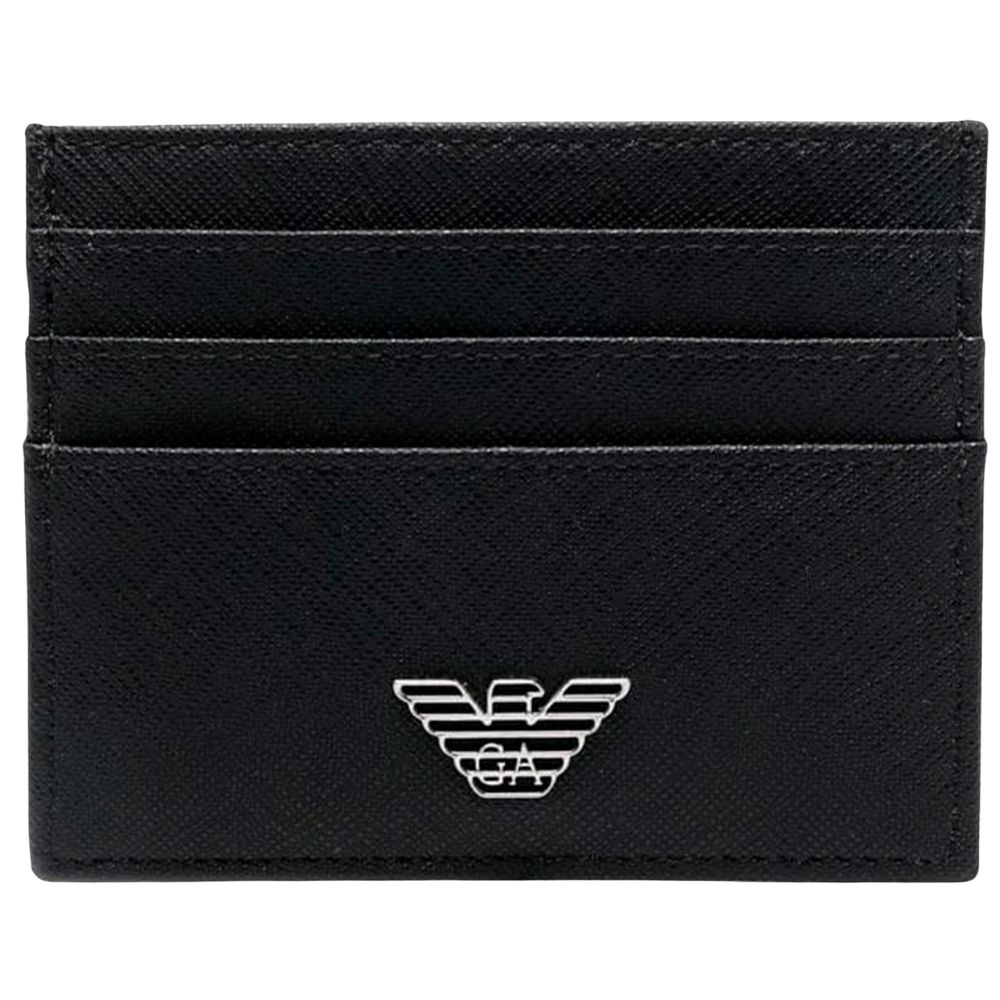 Sleek and sophisticated, the EMPORIO ARMANI  Black Card Holder is crafted from premium textured leather for everyday elegance. Designed with multiple slots for your essentials, it slips effortlessly into your pocket while showcasing the signature G/A Eagle logo for a refined finish.