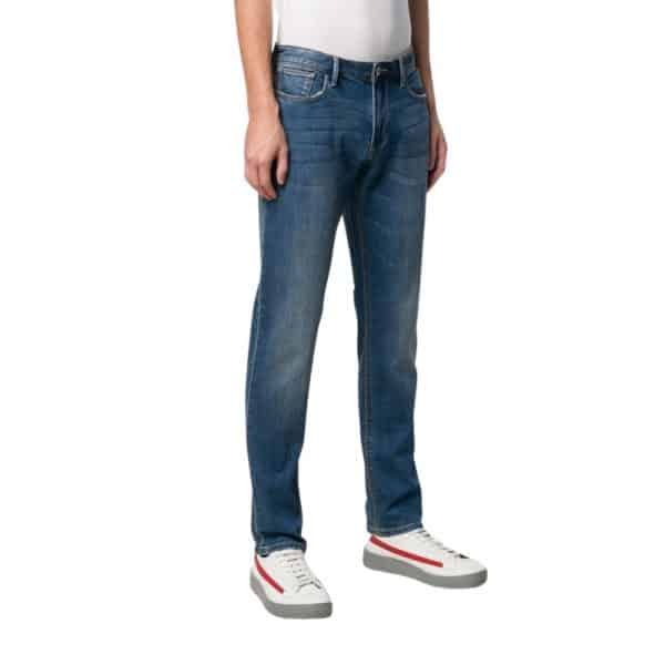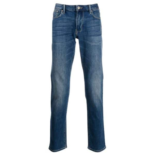 Emporio Armani Jeans crafted from soft stretch cotton, these blue J06 slim-fit jeans are a wardrobe essential. Featuring a mid rise, a waistband with belt loops, a button & zip fastening, a five pocket design, rear logo plaque.