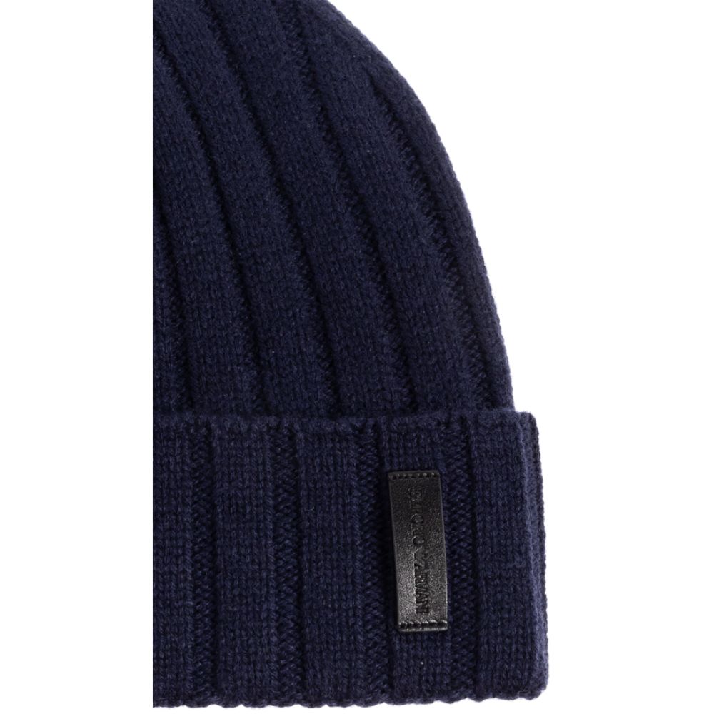 A signature beanie hat by Emporio Armani. Featuring a branded leather plaque, this luxe accessory is knitted with a ribbed structure in cashmere and virgin wool.