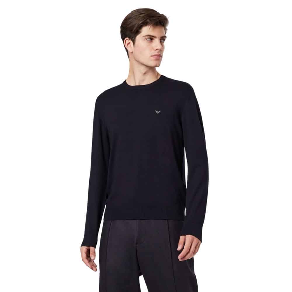 The Emporio Armani Milano Stitch Crewneck Sweater in Navy is a stylish knitwear piece with a classic design. Cut for a slim fit, the cuffs and hem have ribbing to ensure a sleek fit. The iconic eagle logo is on the left chest for an understated and distinctive mark of Armani style.