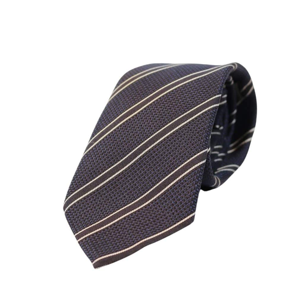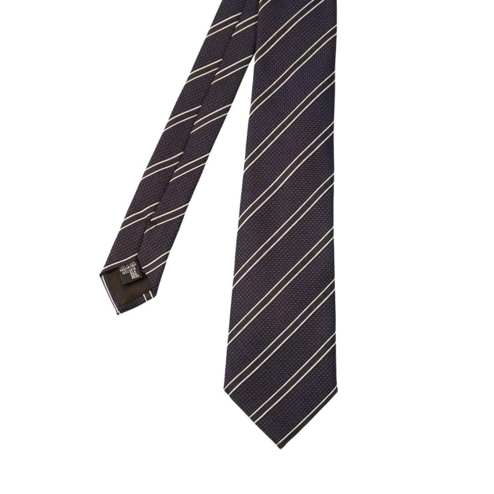 The Emporio Armani Regimental Stripe Tie in Navy is made in Italy from quality silk and features a white lined regimental stripe. The piece is complete with a keeper loop on the back. Look smart by pairing it with your well-tailored shirts.