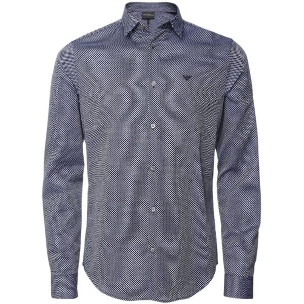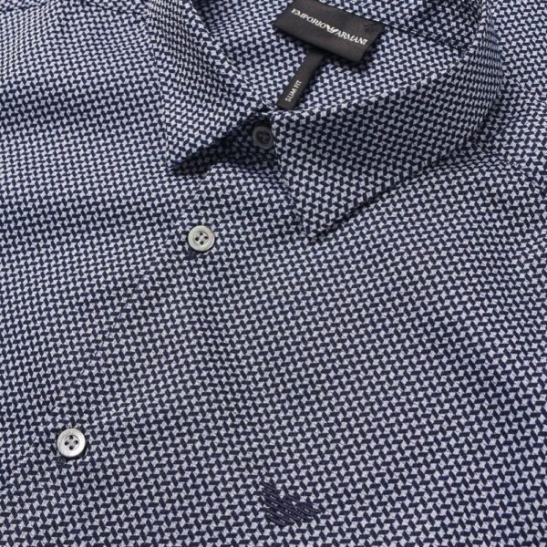 Opt for the Emporio Armani Blue Textured Check Shirt on your next evening out for luxe smart-casual style. Cut to a slim fit and crafted in a premium woven textured cotton, the shirt offers a tailored silhouette and tactile handle. Featuring a short pointed collar and adjustable cuffs, this shirt offers a modern look. The embroidered eagle logo and branded mother-of-pearl buttons add iconic detail synonymous with Armani.