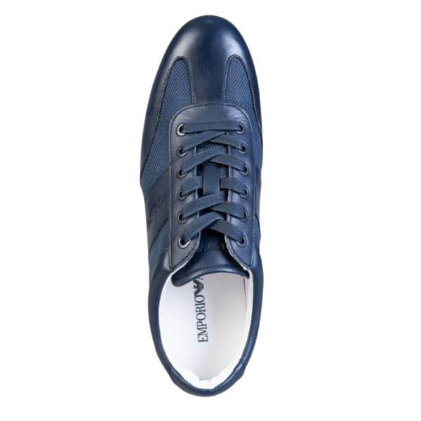 The Emporio Armani classic court style trainer combines quality leather and technical fabric. Featuring a lightweight upper smooth cupsole construction and the distinct Emporio Armani branding to side.