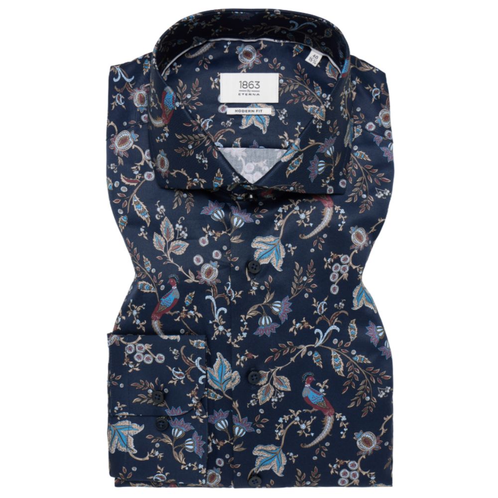 Make a subtle statement with the ETERNA 1863 Peacock Floral Navy Shirt. Featuring a refined navy base with an elegant floral pattern, this modern fit shirt offers a tailored silhouette with room to move. Crafted from premium, non-iron cotton, it delivers all-day comfort and effortless style—perfect for smart-casual or evening wear.