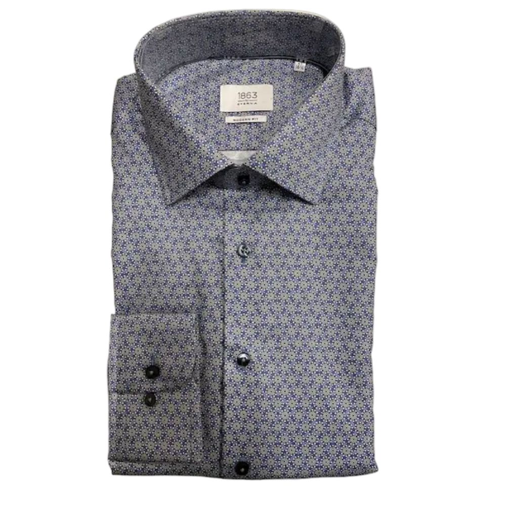 This ETERNA modern fit blue medallion print shirt is made from luxury soft cottons and offers both comfort and durability.