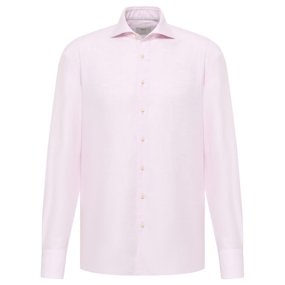 Light, breathable, and refined. This modern fit Eterna shirt blends linen and cotton for a soft, airy feel, while the fresh pink tone adds a modern touch. Ideal for warm-weather dressing, from smart casual to semi-formal occasions.