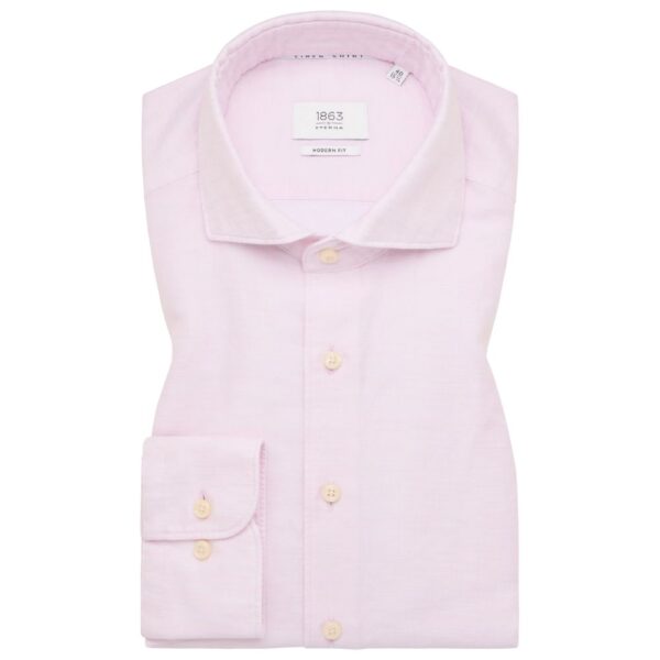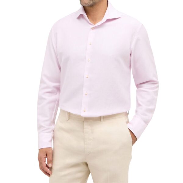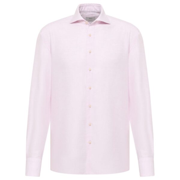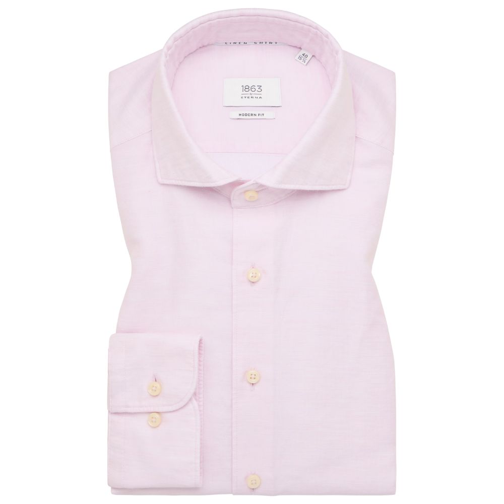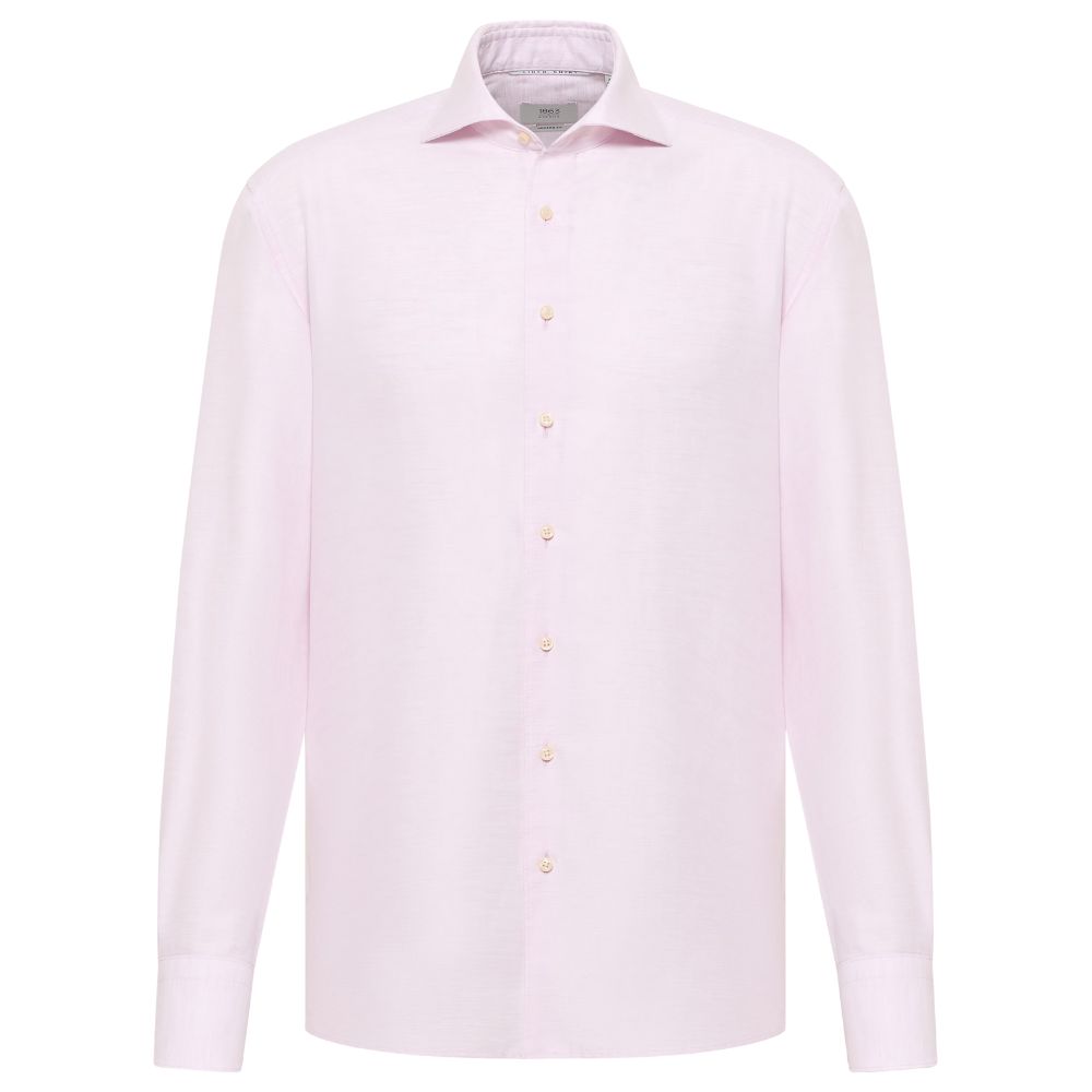 Light, breathable, and refined. This slim fit Eterna shirt blends linen and cotton for a soft, airy feel, while the fresh pink tone adds a modern touch. Ideal for warm-weather dressing, from smart casual to semi-formal occasions.