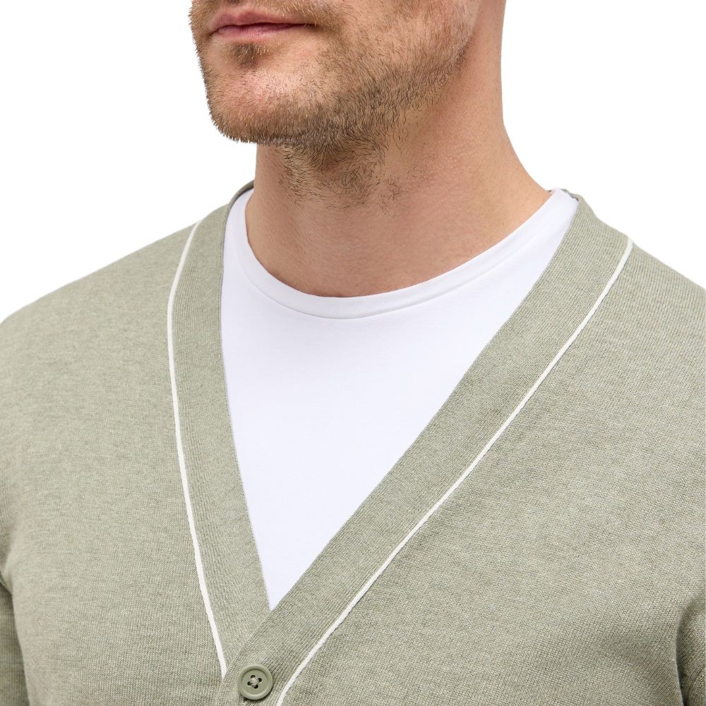 Elegant and refined, the Eterna Sage Green Cotton Cardigan is a stylish layering piece for any wardrobe. Crafted from soft, breathable cotton, it features contrast white piping, a button-up front, and a comfortable fit. Perfect for both casual and smart-casual outfits, offering effortless sophistication.