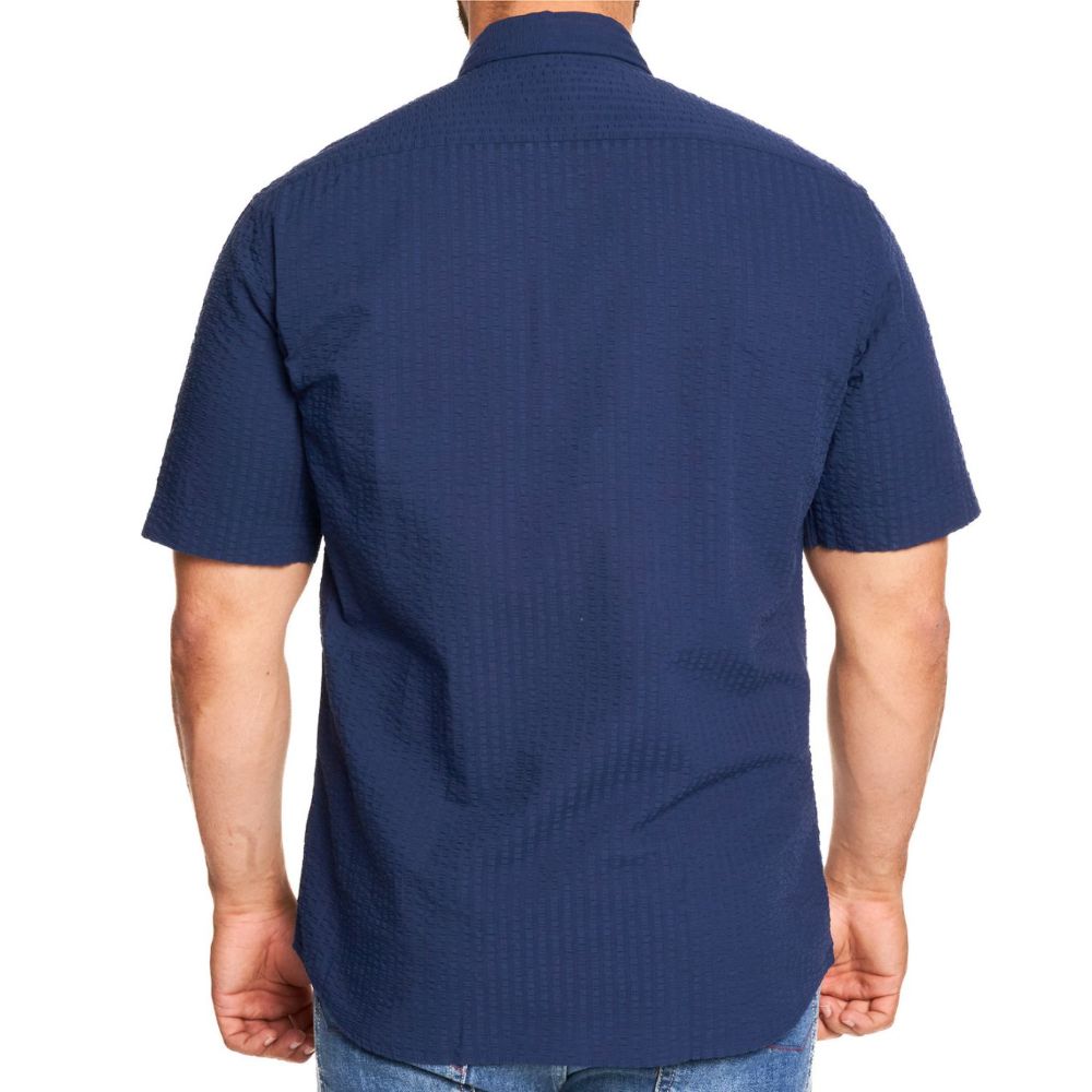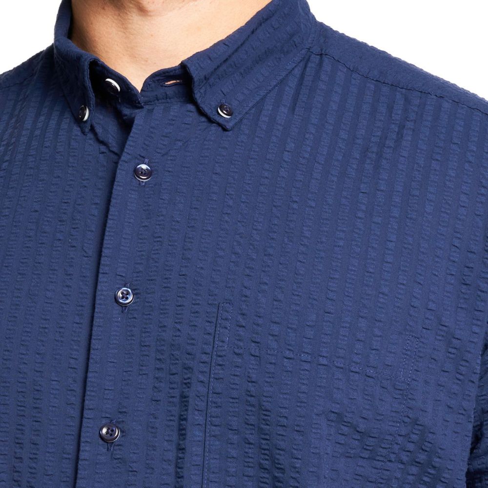 This Eterna navy shirt is crafted with precision and attention to detail, making it a wardrobe essential. The classic navy hue is elevated by the distinctive seersucker texture, offering a breezy and relaxed aesthetic. Perfect for casual outings or smart-casual occasions, this shirt effortlessly blends comfort and sophistication.