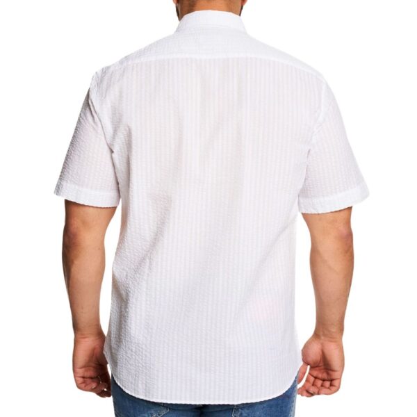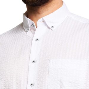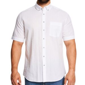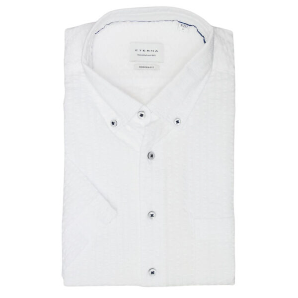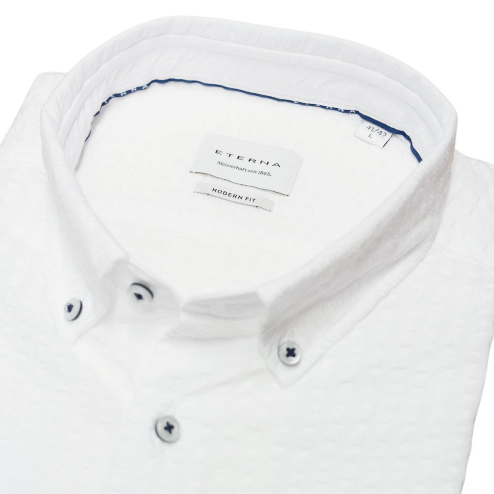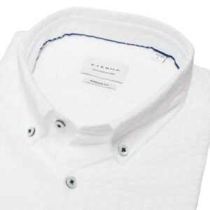 This Eterna white shirt is crafted with precision and attention to detail, making it a wardrobe essential. The classic white hue is elevated by the distinctive seersucker texture, offering a breezy and relaxed aesthetic. Perfect for casual outings or smart-casual occasions, this shirt effortlessly blends comfort and sophistication.