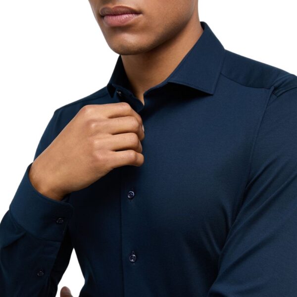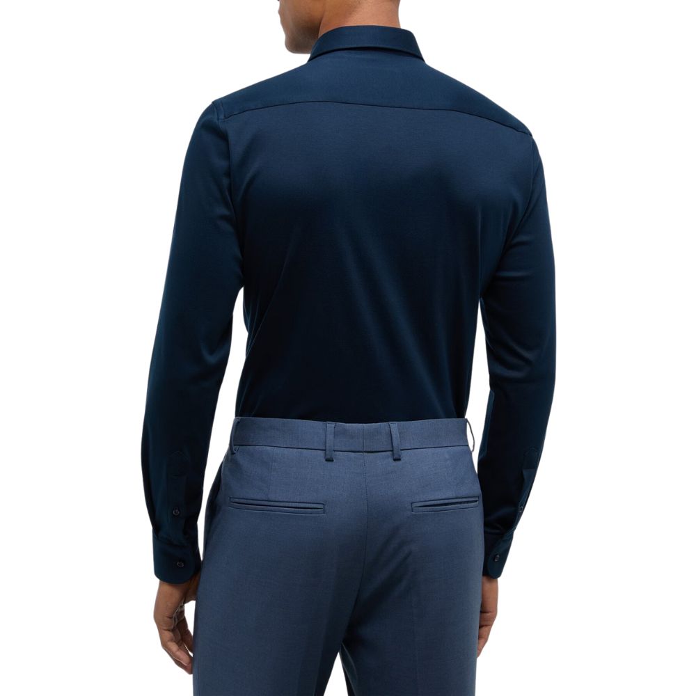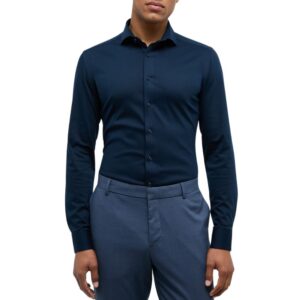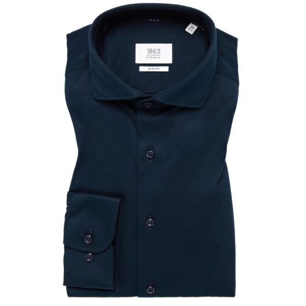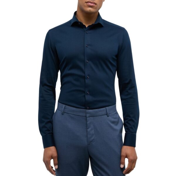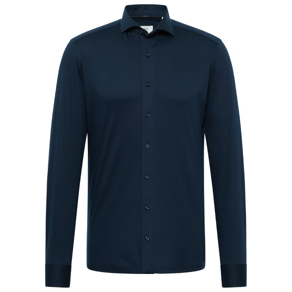This ETERNA cotton Navy shirt is a wardrobe essential. Crafted from premium jersey, this shirt offers exceptional comfort and breathability. Its slim fit, super stretch and super soft fabric makes it a perfect for both formal and casual occasions.