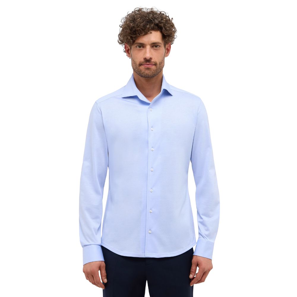 This Eterna timeless Japanese Knitted Light Blue shirt is crafted with meticulous attention to detail, and is a quintessential piece for every modern man. The slim fit accentuates your physique while ensuring optimal comfort.