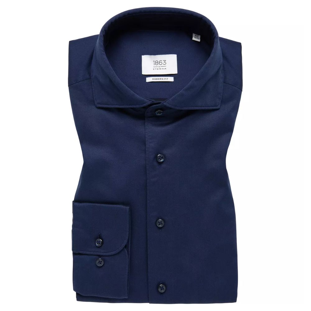 Discover the perfect blend of comfort and style with the ETERNA Modern Fit navy shirt. Crafted from premium two-ply cotton, this navy shirt features a sophisticated cut-away collar and classic rounded cuffs. Its versatility makes it ideal for both office and off-duty occasions.