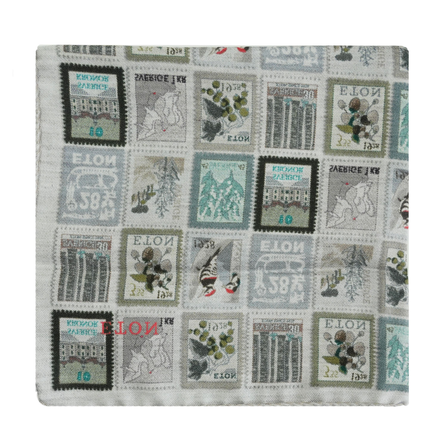 This Eton Beige Pocket Square With Stamp Print is an elegant accessory that features a classic beige base adorned with a playful yet refined stamp print design.