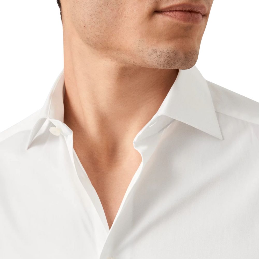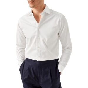 Eton’s most iconic elevated twill white shirt boasts an impeccable business look and all-day sharpness. Made from enhanced elevated Swiss cotton it has a tightly closed weave for a smooth and soft surface, lightweight but strong and durable fabric that drapes beautifully. Crafted to perfection with exquisite tailoring in true timeless elegance.