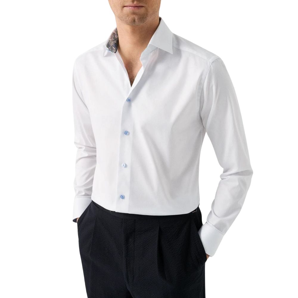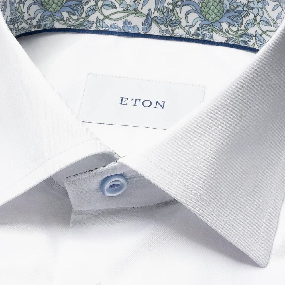 The Eton Contemporary Fit Floral Trim White Shirt pairs classic tailoring with a subtle decorative touch. Crafted from premium cotton for a crisp, comfortable feel, it features a contemporary fit and refined floral trim detailing for added character. A versatile choice for both professional and smart-casual wear.