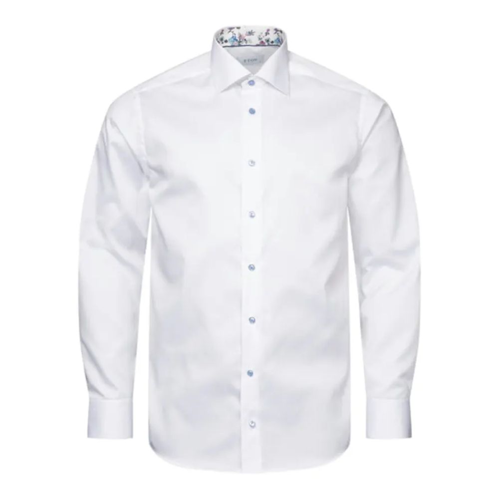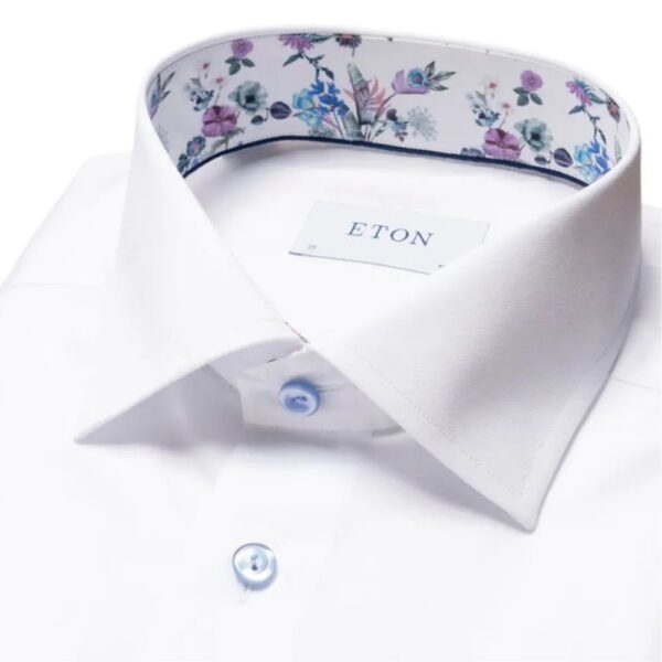 A true Eton icon, one of our most popular styles boasts an impeccable business look. Crafted from our smooth wrinkle-free signature twill fabric, it features contrast floral fabric in the collar and cuffs, a smooth and soft hand, and a crisp and lustrous appearance.