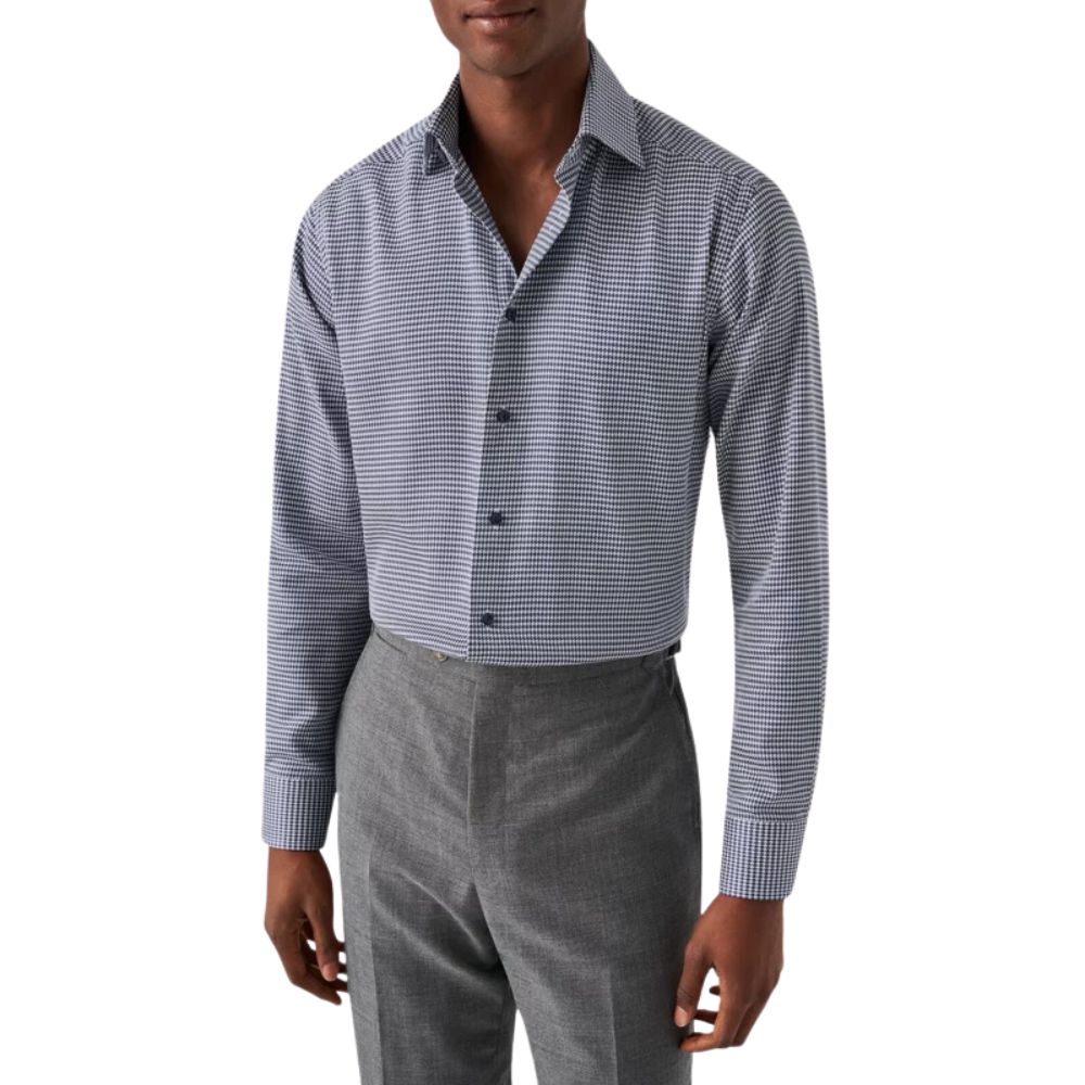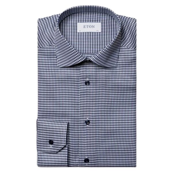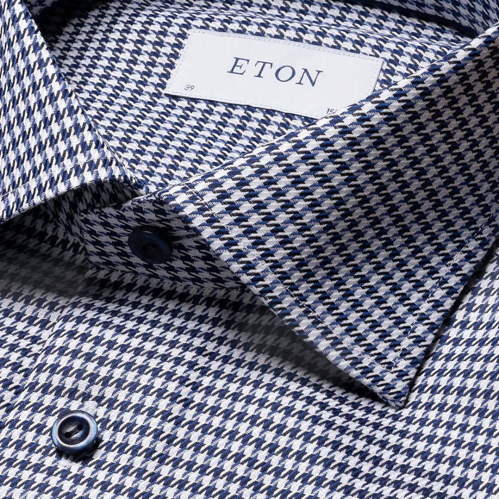 An elegant Eton dress shirt with a woven houndstooth check pattern cut from our lustrous 100% cotton Signature Twill weave with subtle texture and added comfort. This elevated essential features a cut-away collar and outstanding crease-resistant performance for a sharper look.