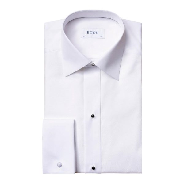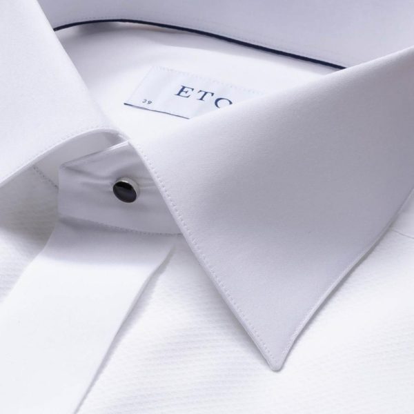 This elegant shirt with a golf ball pique front, is made for black-tie occasions. A sophisticated cutaway collar, double cuff, and black stud buttons create a timeless and elegant appearance. A sophisticated choice for suits and tuxedos.