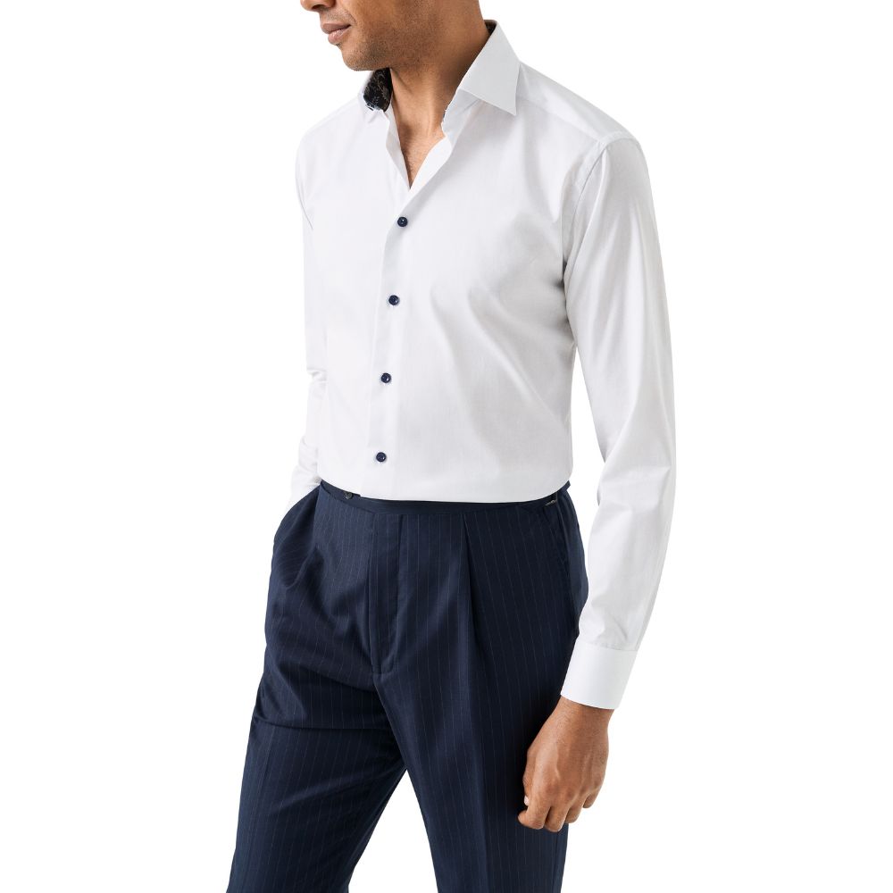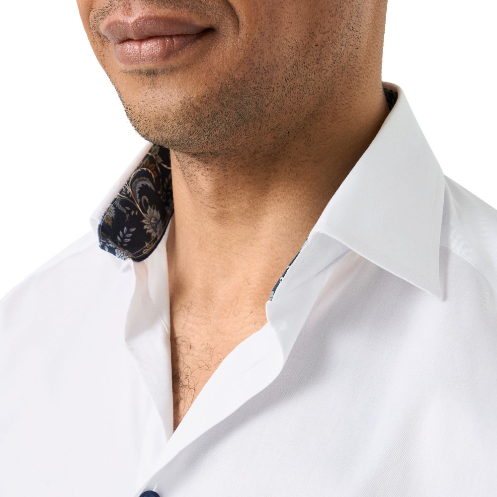 Eton Floral Trim Slim Fit White Shirt Signature Twill