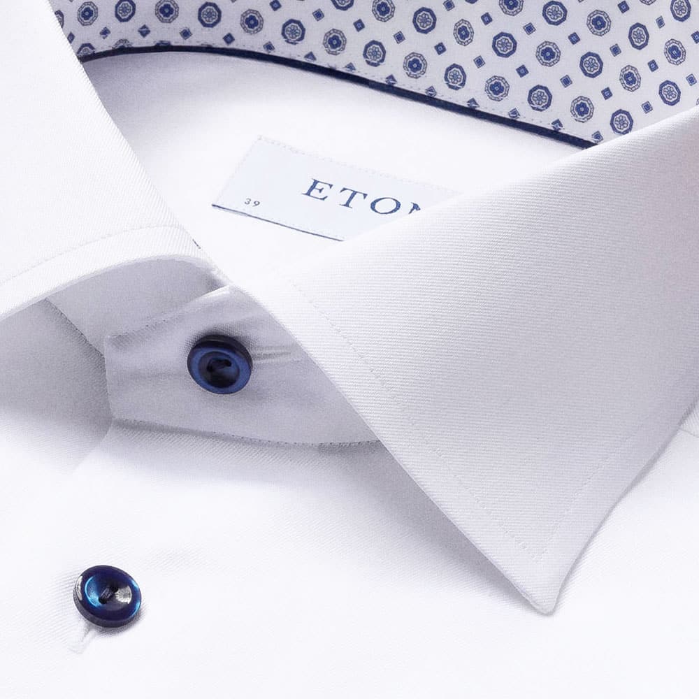 Eton is known for their superb shirts, made from high quality non- iron cotton & featuring a great cut. This dress shirt features a white fabric with insert in collar and cuffs. Contemporary fit for a tailored cut.