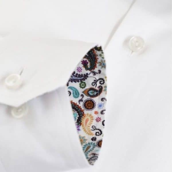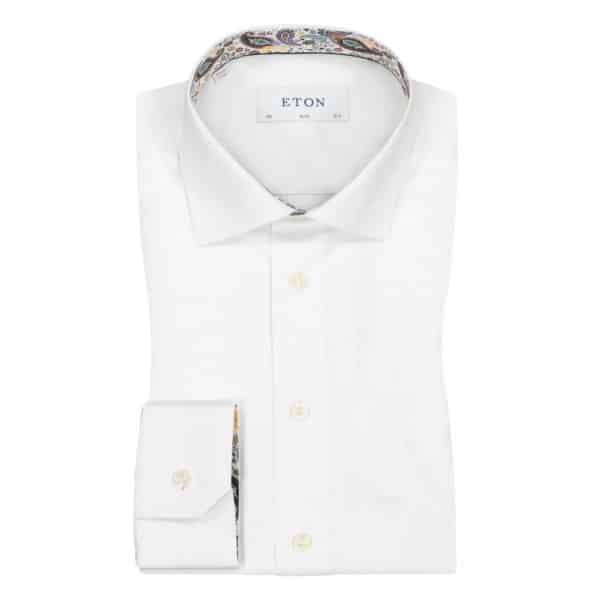 Eton is known for their superb shirts, made from high quality non- iron cotton & featuring a great cut. This dress shirt features a white twill fabric with a multicoloured paisley insert in collar and cuffs. Contemporary fit for a tailored cut.