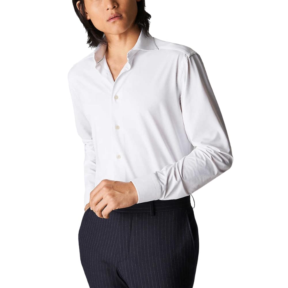 This Eton slim fit four-way stretch shirt comes with a cutaway collar and is made of 83% Polyamide and 17% elastane to give it that extra stretch.