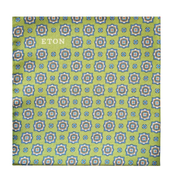 Sophisticated and luxurious Eton plant cell pocket square, crafted in Italy from 100% silk, this elegant accessory is a playful finish to your suit jacket or blazer.