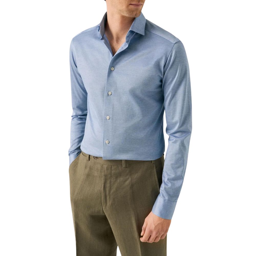 Eton’s most iconic light blue shirt is re-imagined for the season. The Eton light blue diagonal micro twill soft stretch slim fit shirt has a super soft touch, a gorgeous light blue colour, mother of pearl shine white buttons and single cuffs which are versatile as can be used with cufflinks. This design adds a stylish twist to the classic blue shirt. Made from a diagonal micro-twill fabric which combines outstanding wrinkle-resistant performance with fine texture and comfort, in a luxurious cotton, Tencel™ lyocell and elastane blend.