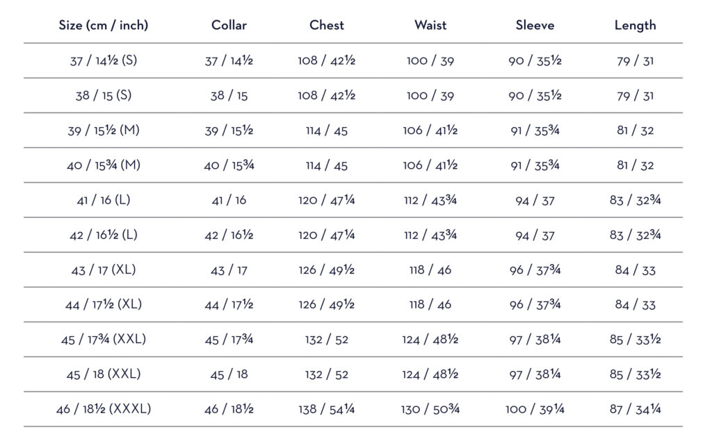 | Collar Size | 15, 15.5, 16, 16.5, 17, 17.5, 17.75 |