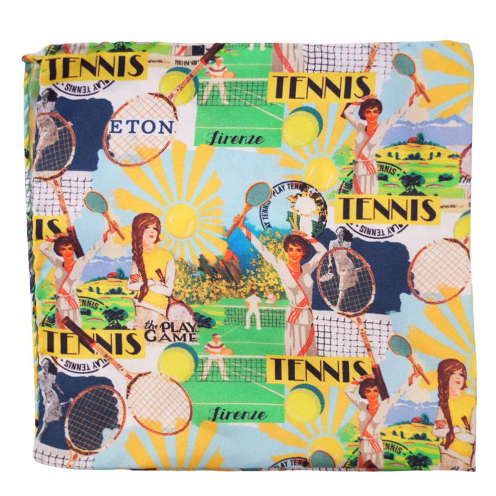 This Tennis themed Eton Pocket Square is a stylish and playful accessory perfect for adding a touch of elegance and personality to your ensemble.