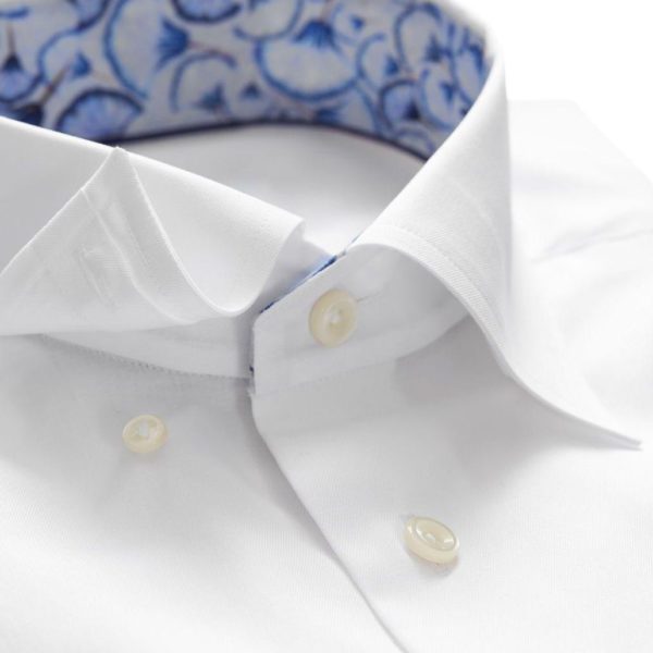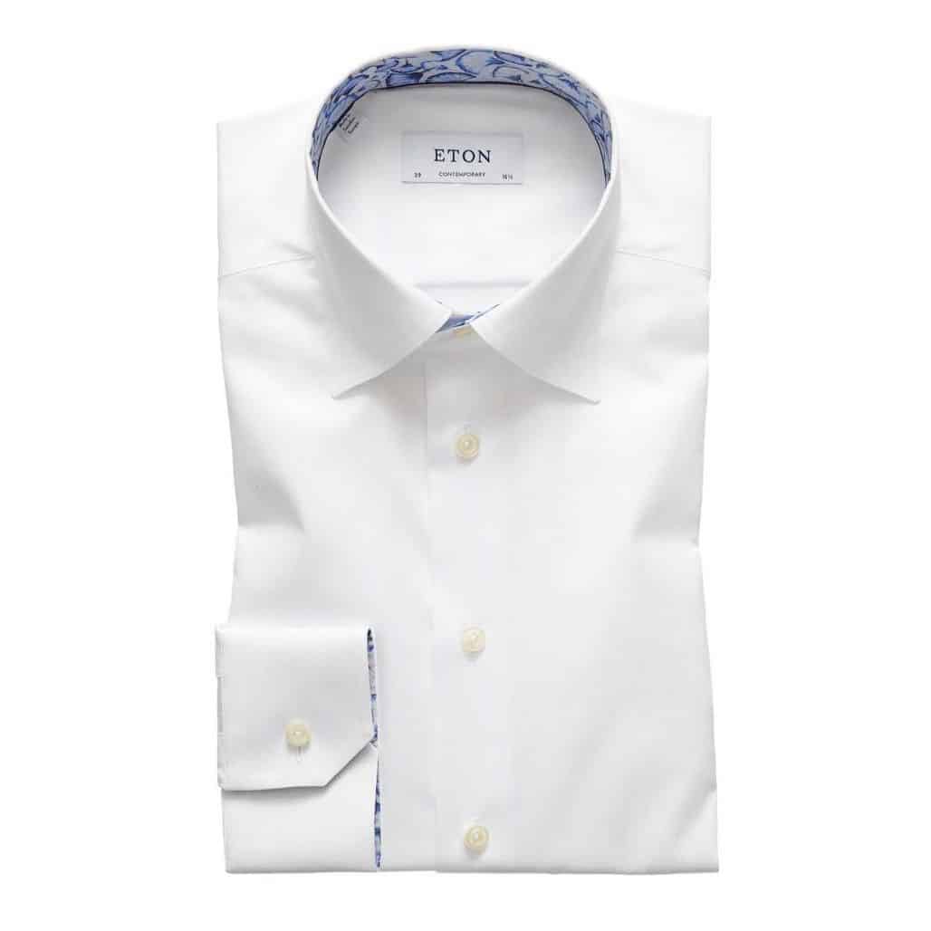 Eton is known for their superb shirts, made from high quality non- iron cotton & featuring a great cut. This Eton shirt features a white fabric with a papyrus print insert in collar and cuffs. Contemporary fit for a tailored cut.