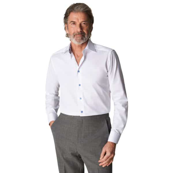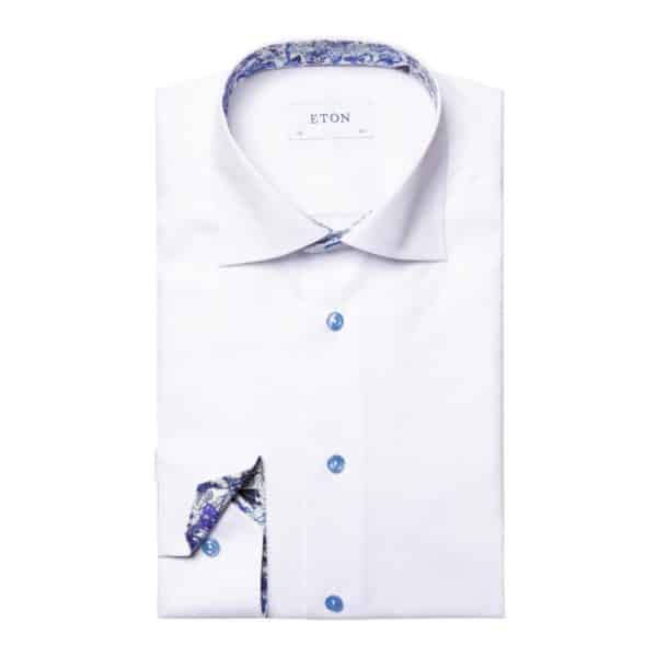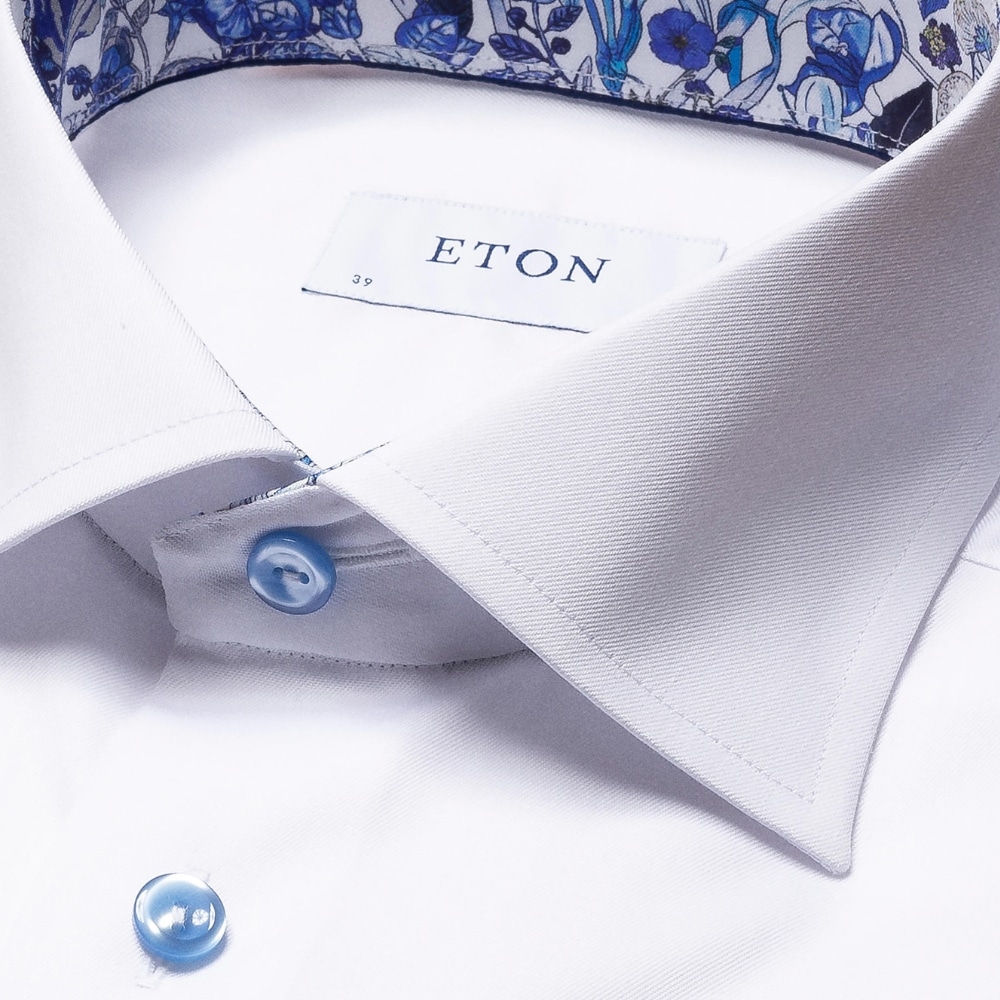 A true Eton icon, one of our most popular styles boasts an impeccable business look. Crafted from our smooth wrinkle-free signature twill fabric, it features contrast floral fabric in the collar and cuffs, a smooth and soft hand, and a crisp and lustrous appearance.
