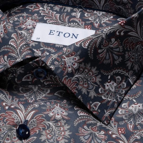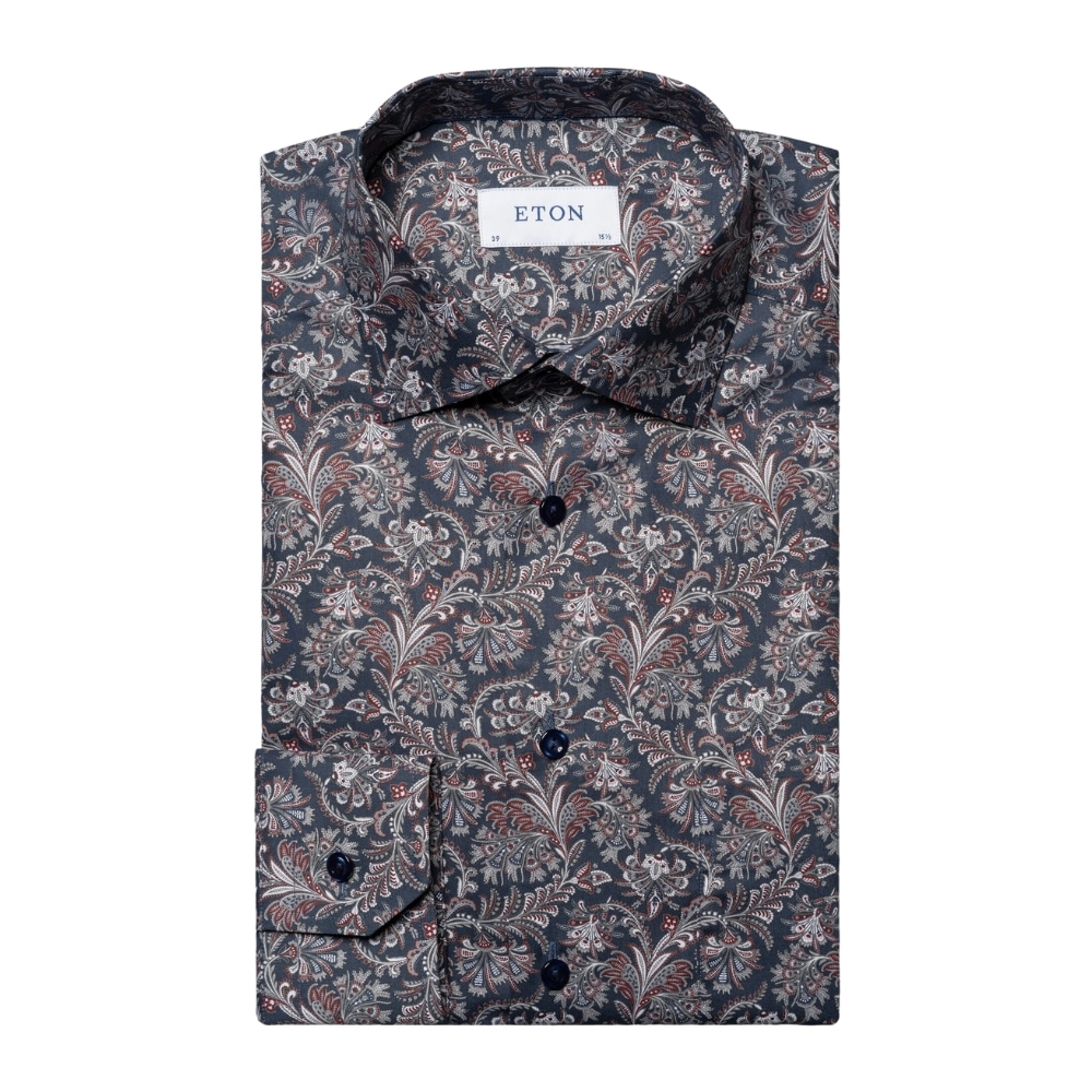 A true Eton icon, one of our most popular styles boasts an impeccable business look. Crafted from our smooth wrinkle-free signature twill fabric, it features contrast floral fabric in the collar and cuffs, a smooth and soft hand, and a crisp and lustrous appearance.