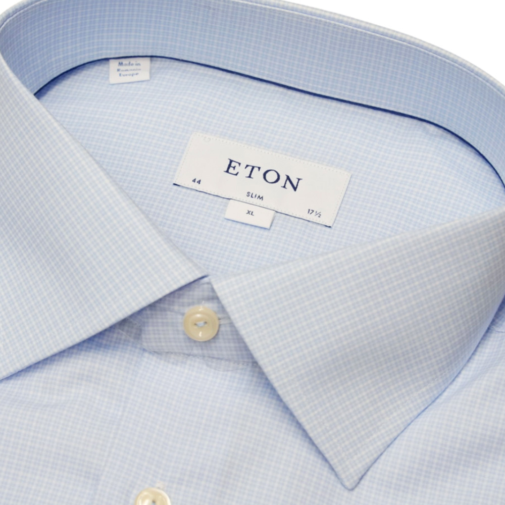 Eton Slim Fit Double Check Light Blue Shirt