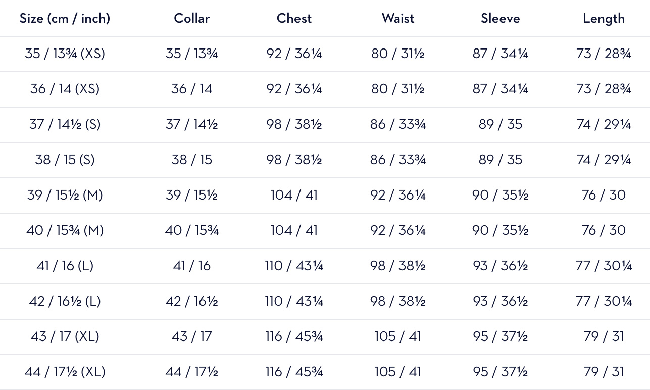 | Collar Size | 14.5, 15, 15.5, 15.75, 16, 16.5, 17, 17.5, 18 |