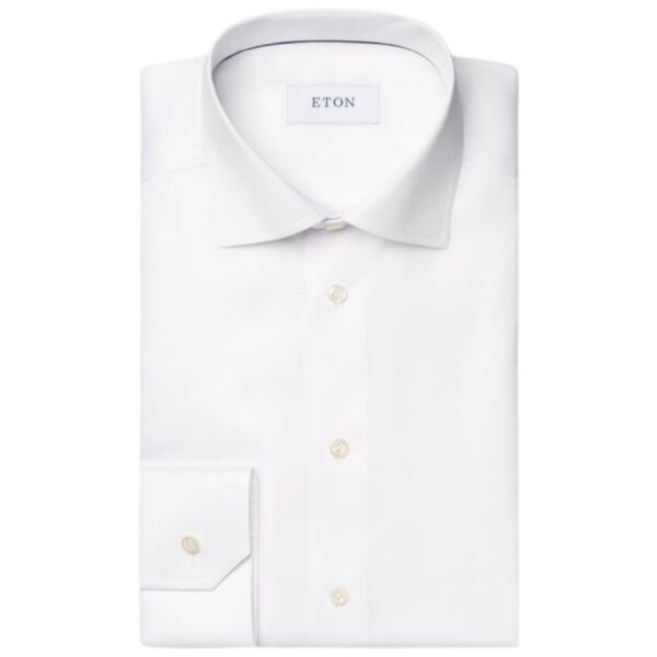 Eton is known for their superb shirts, made from high quality non-iron cotton & featuring a great cut. This dress shirt features a white twill fabric and a moderate cutaway collar.