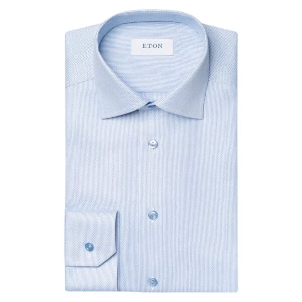 Elevate your wardrobe with the Eton Two-Tone Weave Contemporary Fit Blue Shirt, a perfect blend of classic elegance and modern design. Crafted from premium cotton, this shirt features a refined two-tone weave that adds depth and texture to its sophisticated blue hue. The contemporary fit offers a tailored yet comfortable silhouette, making it ideal for both professional settings and upscale casual occasions. Signature Eton details, like the sharp spread collar and impeccable craftsmanship, ensure you look polished from day to night. Effortless style meets timeless quality with this versatile wardrobe essential.
