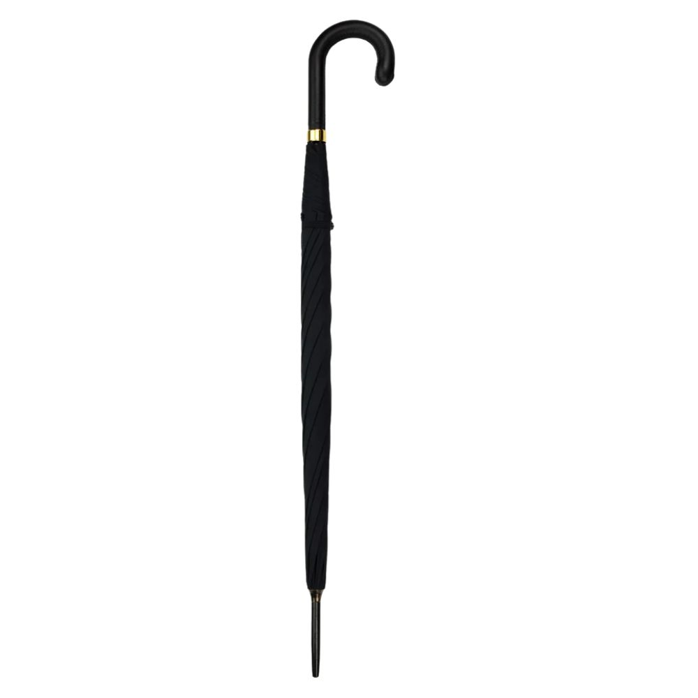 The Fox’s Black Leather Handle Black Umbrella combines refined craftsmanship with timeless elegance. Featuring a sleek black canopy and a smooth black leather-wrapped handle, it offers durable protection with a luxurious finish. A classic accessory designed for reliability, comfort, and understated sophistication.