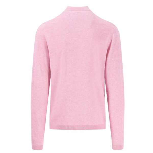 This pink half zip jumper is made of 100 % cotton and inspires with its stylish Troyer collar and a particularly soft fit. The half zip collar gives a sporty note and offers you versatile styling options open to a casual look or closed for more warmth. The high quality cotton material feels pleasant on the skin and ensures optimal comfort. A timeless companion who convinces with its durability and the casual style. Perfect for relaxed leisure looks or the well kept everyday life.