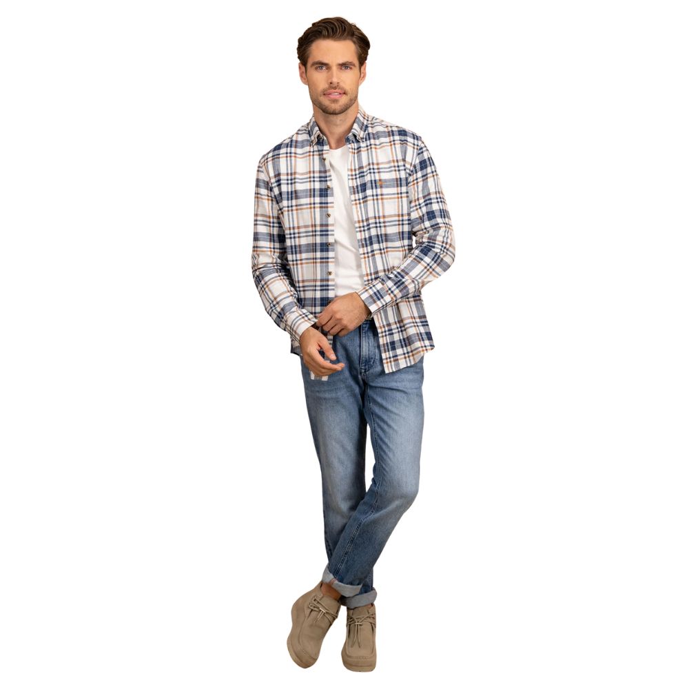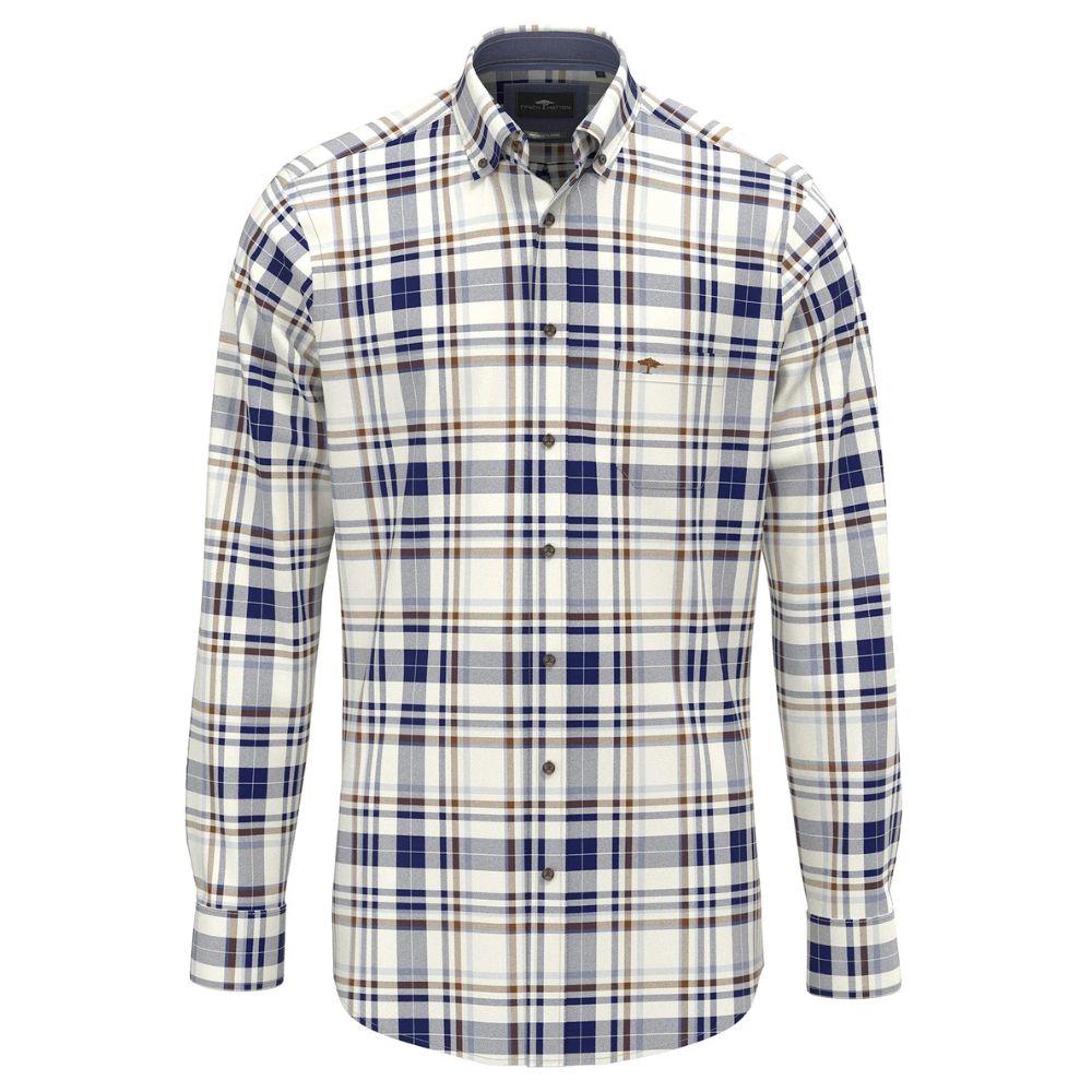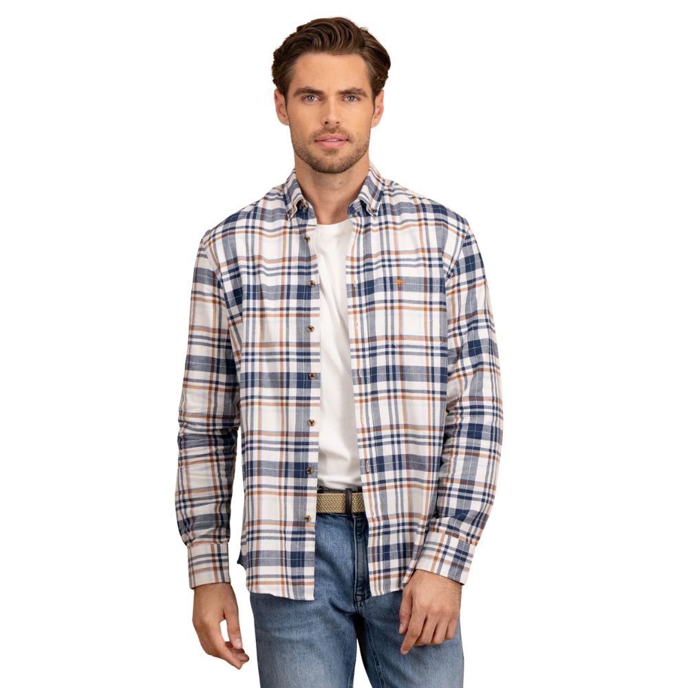 The Fynch-Hatton Button Down Premium Cotton Blue Check White Shirt is a timeless design with a warm, versatile palette. Crafted from premium cotton, this men’s check shirt features a refined blue and soft brown check on a crisp white base. Finished with a button-down collar, it delivers both comfort and classic style, making it a perfect choice for smart-casual and everyday wear.