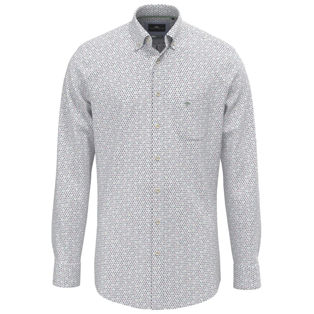 The Fynch-Hatton Premium Cotton White Shirt features a refined white base with an intricate geometric mosaic print for a modern twist on classic tailoring. Designed with a button-down collar and crafted from soft cotton, it offers both comfort and standout style for smart-casual occasions.