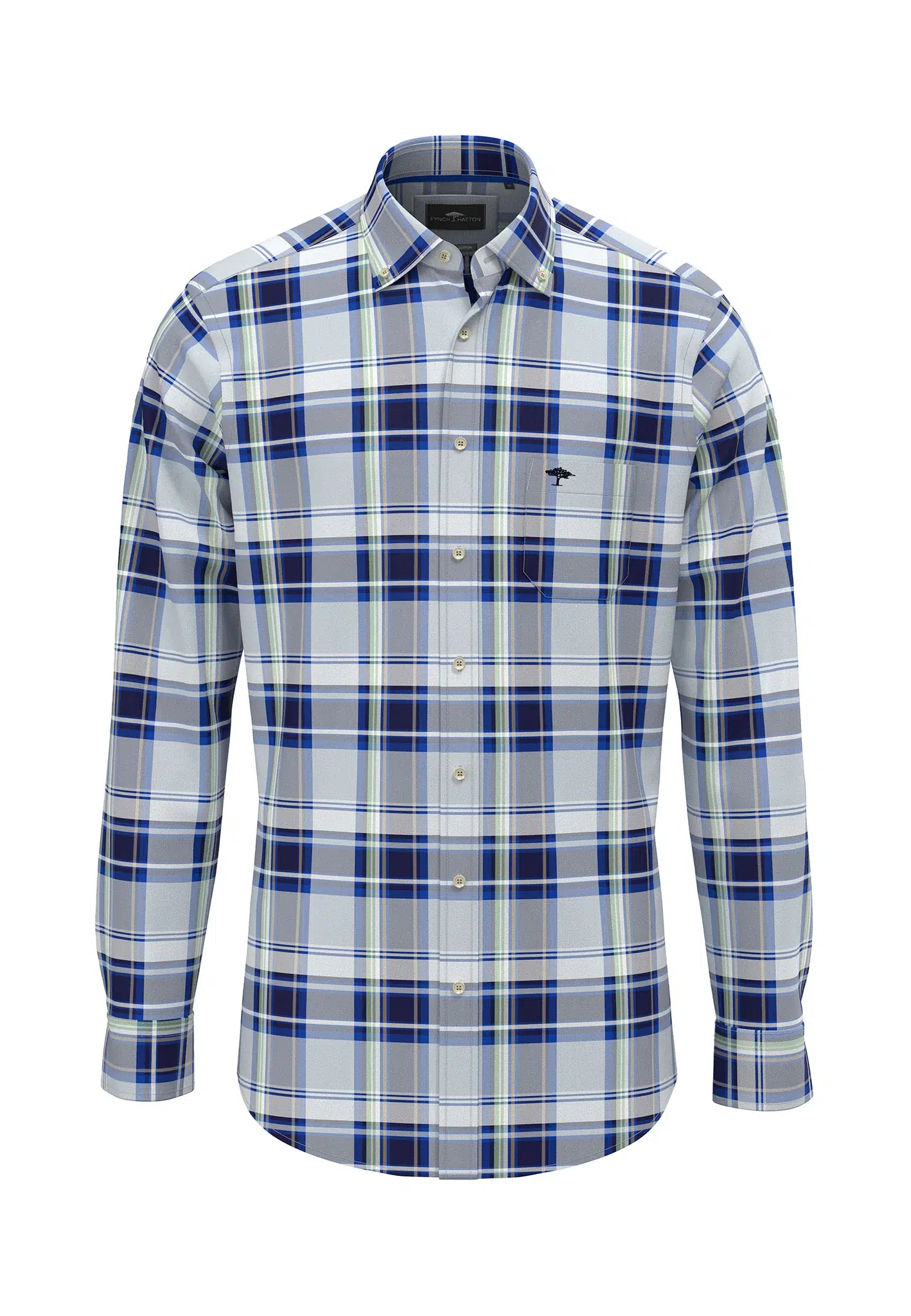 This blue checked shirt with a button down collar and subtle logo detail combines timeless style with modern elegance. The classic check pattern is accentuated by the distinctive collar, while the subtly placed logo adds a premium touch. Crafted from soft, durable cotton, it offers a comfortable feel and is ideal for office or casual wear. A versatile shirt that subtly enhances your style.